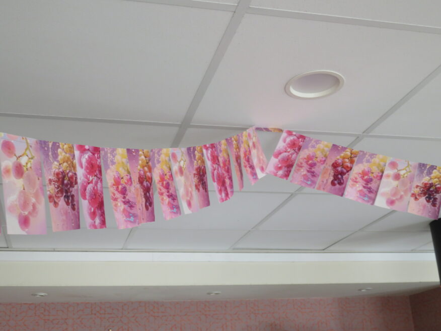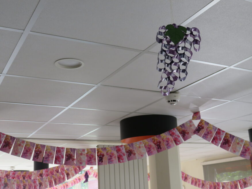 Les résidents de Ty-Braz se sont réunis lors d’ateliers manuels pour réaliser la décoration d’automne sur le thème du raisin . Ils ont fabriqué des guirlandes, des raisins en papier et des raisins en pompon.